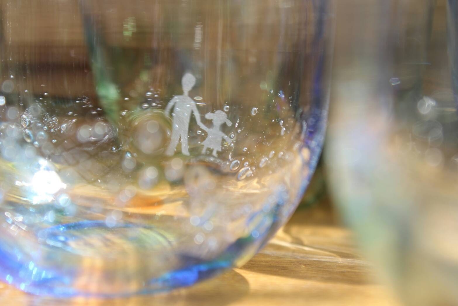 ちいさな子どもような自由な思いがそこに生まれればいいなと思う。熱く赤くとろとろに溶けたガラス。大地の砂から生まれたガラス。小さな思いとともに固くなり光を抱きそこにある。絵本のような自由な世界がそこに広がればいいなと思う。生まれでたガラスたちが旅立つその手の中でやわらかくしっくりとなじんでくれることを願って。